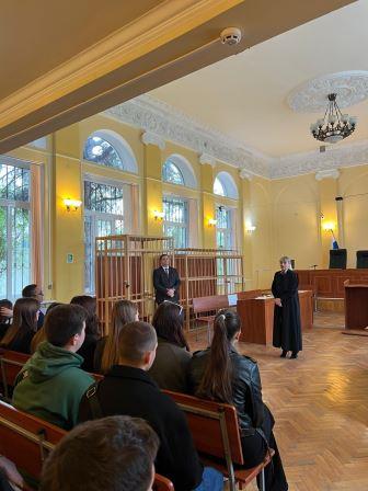 В рамках программы мероприятия будущим правоведам организовано: экскурсия-мастер-класс по ходу движения дела; мастер-класс по действиям секретаря судебного заседания и помощника судьи; прошивка дел для сдачи в архив; правовой урок, а также участие в качестве слушателей в открытом судебном заседании по уголовному делу. Слова приветствия будущим правоведам сказали заместители председателя суда – Алексей Нанаров и Наталья Володарец. О порядке рассмотрения уголовных дел судом первой инстанции будущих юристов в ходе правового урока проинформировал заместитель председателя суда Алексей Нанаров, который поделился с ними своим опытом рассмотрения уголовных дел и привел реальные случаи из своей судебной практики. Помощник судьи Алина Киргиз провела для студентов мастер-класс по действиям секретаря судебного заседания и помощника судьи, разъяснив, что входит в их непосредственные обязанности, а также наглядно показала совершение действий при поступлении искового заявления на рассмотрение судье. В ходе встречи сотрудники суда ознакомили ребят с архивными делами суда с 1944 года, в которых судебные акты были написаны чернилами от руки на желтой бумаге, а для обложек дел использовались листы газет и журналов. Гости стали и экскурсантами по зданию суда, посетив залы судебных заседаний, кабинеты судей, канцелярию. Гидами по зданию судебного органа выступили начальник общего отдела Ксения Солошенко и начальник отдела судопроизводства по гражданским делам Эльмира Саламатина, которые рассказали гостям о том, как организована работа в суде, какова специализация судей, какие информационные технологии применяются судом и пр. Студентам была предоставлена возможность прошить реальные дела, выслушав при этом истории из жизни евпаторийцев, описанные на страницах этих судебных дел. Увидеть работу судьи в судебном процессе и погрузится в атмосферу правосудия ребята смогли, став слушателями судебного заседания по уголовному делу о совершении преступления – производство и сбыт наркотических средств (ч.1 ст.228.1 УК РФ). Часы в суде пролетели незаметно, но выражаем надежду, что всё увиденное и услышанное первокурсниками в этот день, проведенный в Евпаторийском городском суде, станет им хорошим подспорьем в обучении и дальнейшей работе. А двоим студенткам из сегодняшней группы ребят ещё предстоит пройти практику в этом суде. Мероприятие организовано Управлением Судебного департамента в Республике Крым и Евпаторийским городским судом Республики Крым совместно с представителями вуза в рамках Плана совместных мероприятий Управления Судебного департамента в Республике Крым и Крымского филиала ФГБОУ ВО «Российский государственный университет правосудия имени В.М.Лебедева» по реализации на территории Республики Крым проекта ФГБОУ ВО «Российский государственный университет правосудия имени В.М.Лебедева» и Судебного департамента при Верховном Суде Российской Федерации – Всероссийское студенческое патриотическое движение. В этом году проект проходит под эгидой знакового в нашей стране события – 80-летия Победы в Великой Отечественной войне. Пресс-служба Управления Судебного департамента в Республике Крым по материалам и фото пресс-службы Евпаторийского городского суда Республики Крым