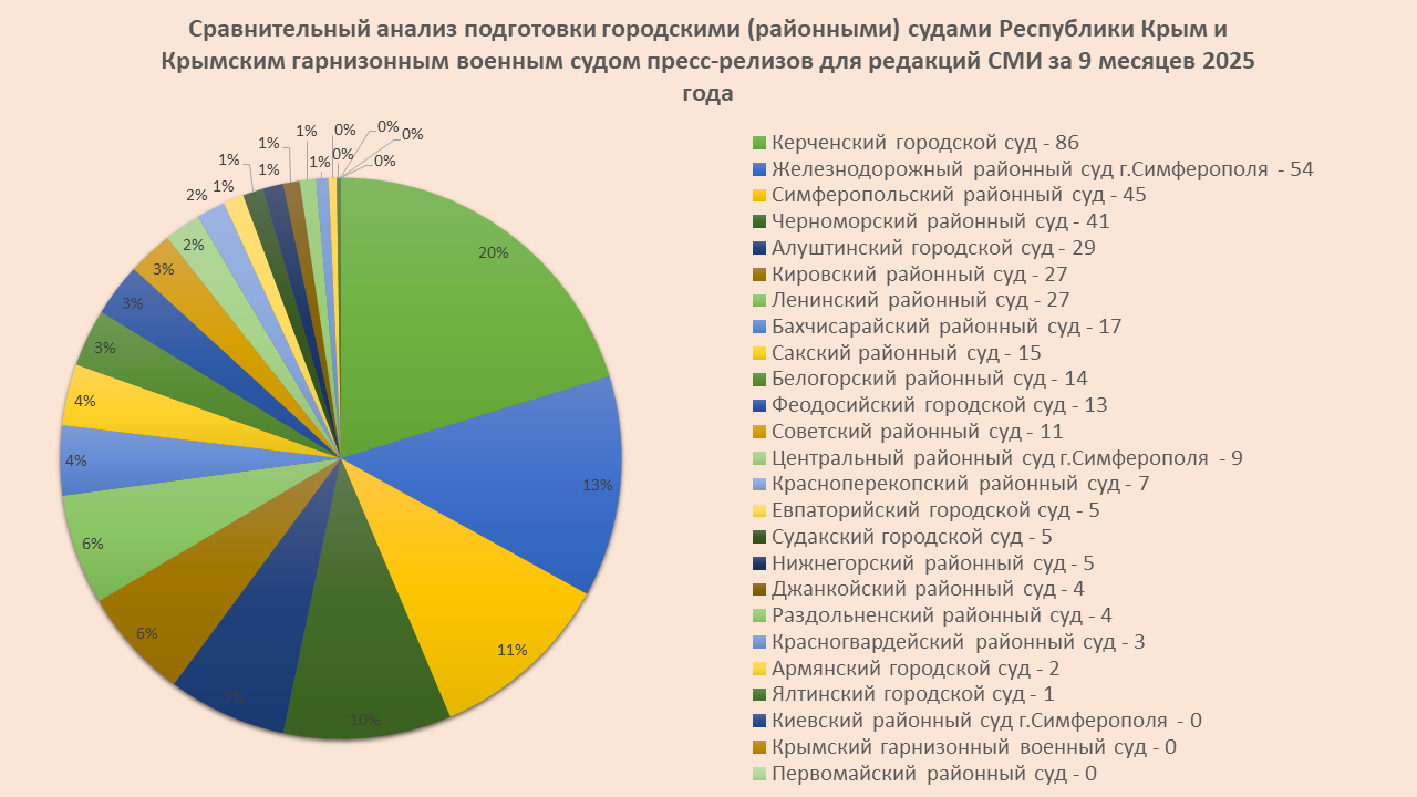 Сравнительный анализ подготовки городскими (районными) судами Республики Крым и Крымским гарнизонным военным судом пресс-релизов для редакций СМИ за 9 месяцев 2025 года