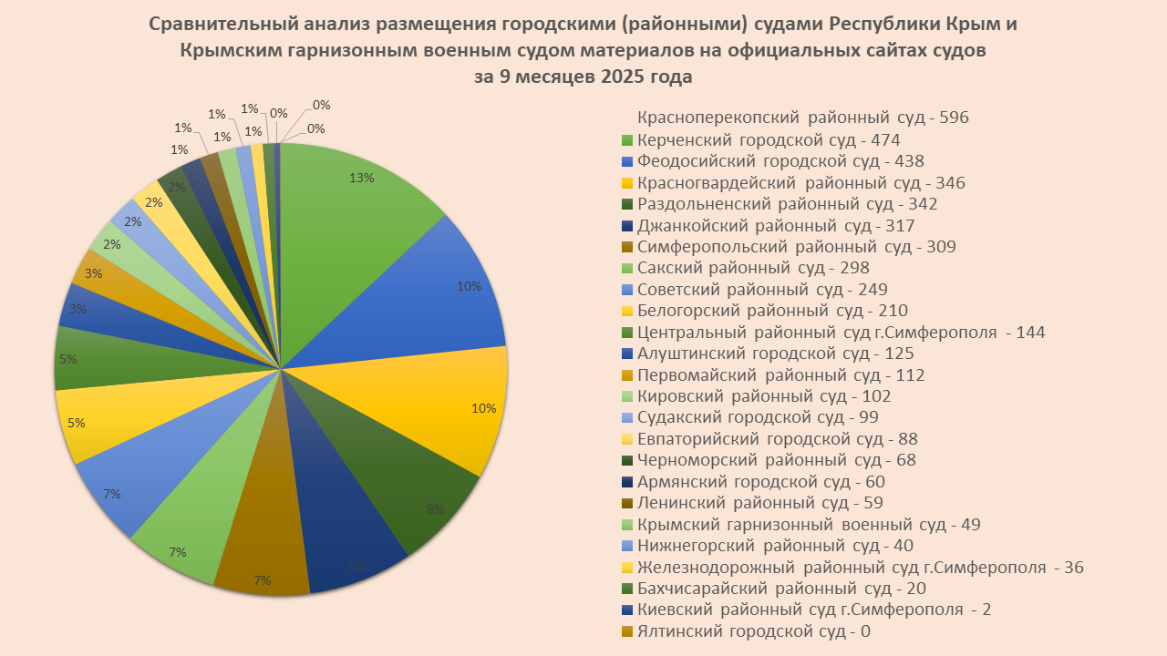 Сравнительный анализ размещения городскими (районными) судами Республики Крым и Крымским гарнизонным военным судом материалов на официальных сайтах судов за 9 месяцев 2025 года