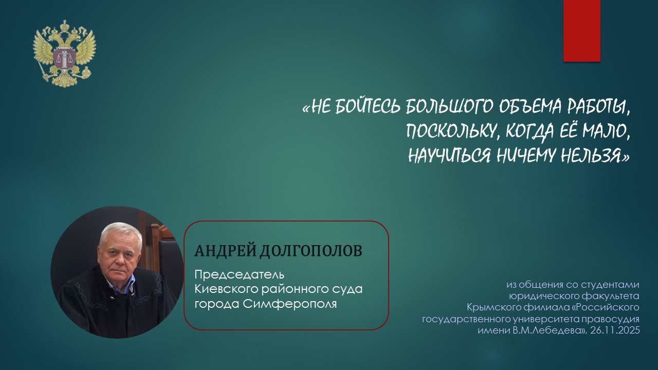 студентами председатель суда Андрей Долгополов рассказал о важности выбранной ими